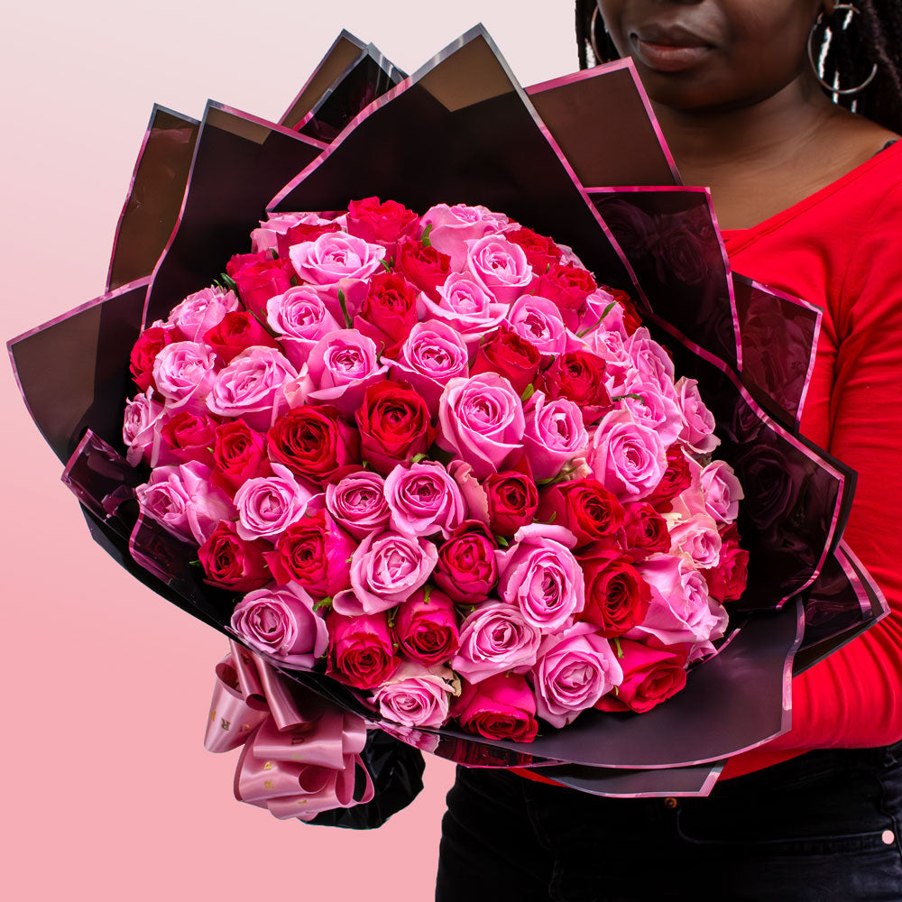 Celebrate love and elegance with our Premium Red & Pink Roses Bouquet. This hand-crafted arrangement blends the timeless passion of red roses with the soft charm of pink roses, creating a romantic gift that speaks straight from the heart.