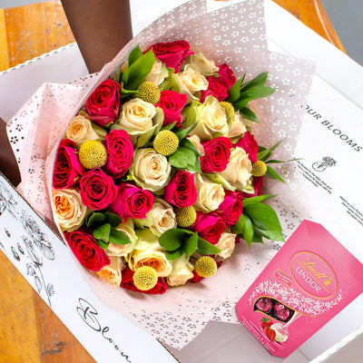 Whether it’s for an anniversary, Valentine’s Day, or just to say “I love you,” this bouquet and chocolate duo is the ultimate gesture of love and romance.