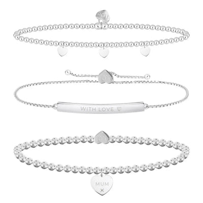 Celebrate her love, strength, and kindness with this elegant Life Charms bracelet set. Featuring three beautifully designed silver-plated bracelets, each piece carries a touch of sentiment and sparkle—crafted to remind her just how marvellous she is.