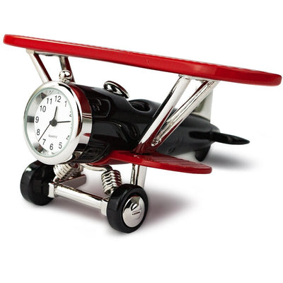 This miniature clock makes a big impression when displayed at home. The red and black metal clock showcases a fantastic bi-plane design which displays great attention to detail.