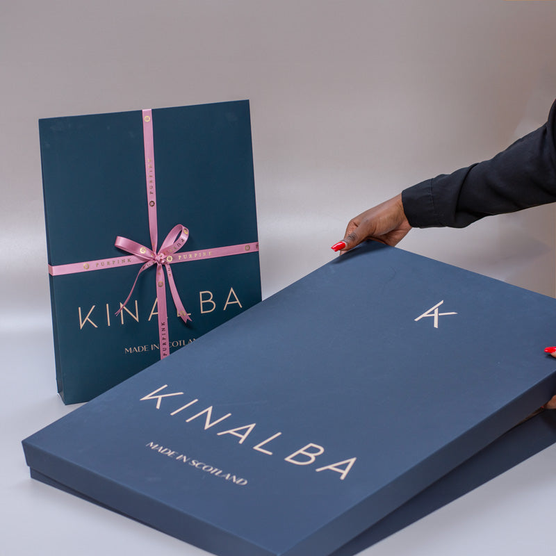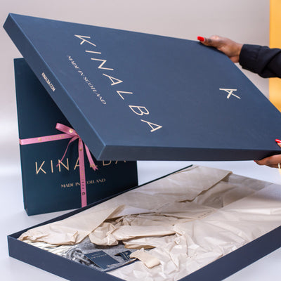 - Wrapped in protective tissue paper and placed inside a Kinalba-branded gift envelope.