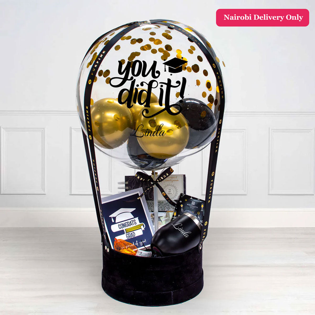 Celebrate your graduate’s incredible journey with the Congrats Grad! Hot Air Balloon, a thoughtful and unique gift that symbolizes their achievements and bright future ahead. This beautifully curated set is designed to make their special moment even more memorable.