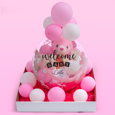 Celebrate the arrival of a baby boy with this charming personalized hot air balloon and gift box.