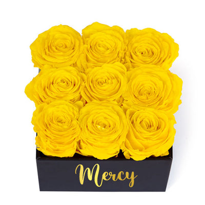 Surprise her with a stunning gift that lasts! These yellow forever roses come beautifully presented in a sleek black gift box. You can personalize the box with a sweet message, making it a truly unique and heartfelt gift.