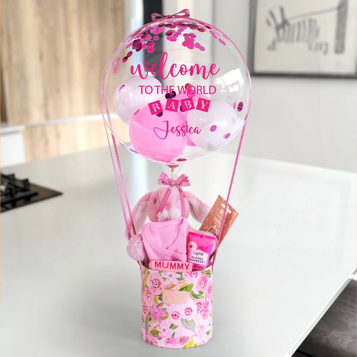 Celebrate the arrival of a baby girl with this charming Personalised Hot Air Balloon & Gift Box—a delightful way to share the joy of new life in the family. Thoughtfully curated with both sentimental keepsakes and pampering essentials, this gift is perfect for welcoming a little one in style.