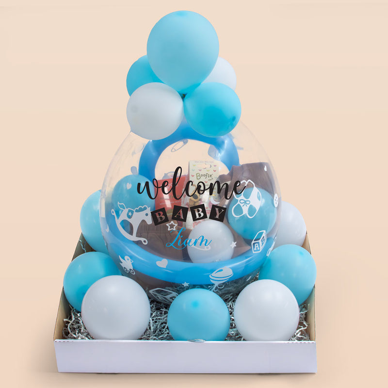 Celebrate the arrival of a baby boy with this unique Personalised Stuffed Bubble Balloon! This clear bubble balloon contains delightful gifts for the new parents, making it a memorable and joyful surprise. Perfect for a baby shower or welcoming the little one home, this thoughtful gift is sure to bring a smile to their faces.