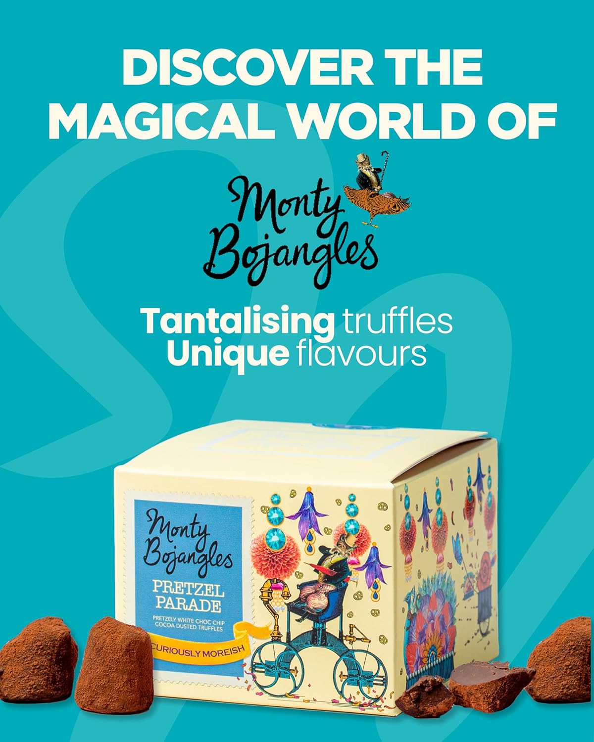 Loved for their imaginative flavours and enchanting packaging, Monty Bojangles truffles are often called “the tastiest in the kingdom,” with the brand boasting 48 Great Taste Awards to date. Each box contains around 10 luxurious truffles — a delightful treat ready to share, gift, or savour slowly.
