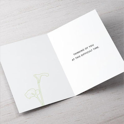 Send this sympathy card as a way to express you condolences to your loved one. The card is simply designed with a soft bloom outline on top. It is blank on the inside hence you can add your own card message.