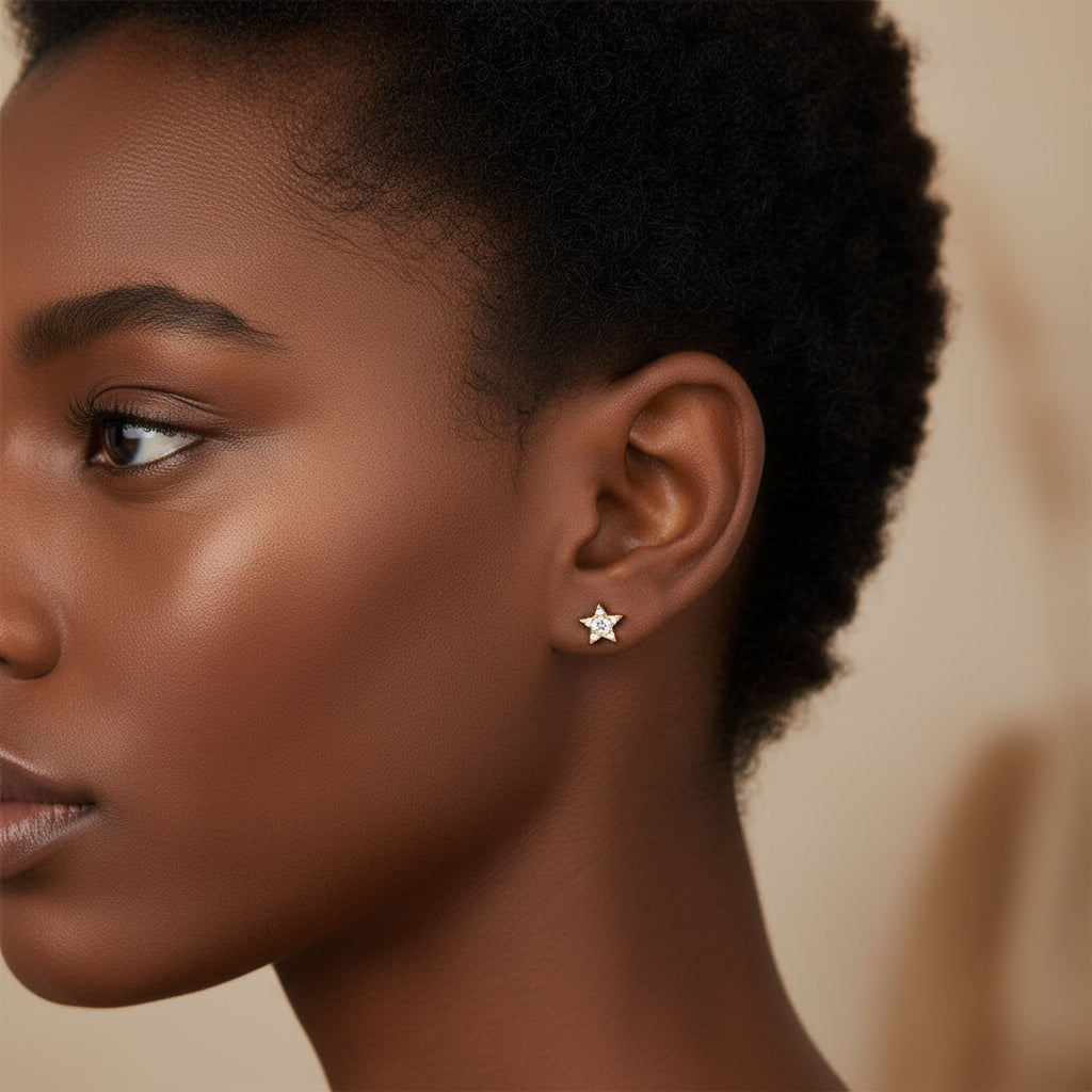 Radiant and eye-catching, these crystal-encrusted star studs add a touch of starlight to any outfit—available in both gold and silver finishes.