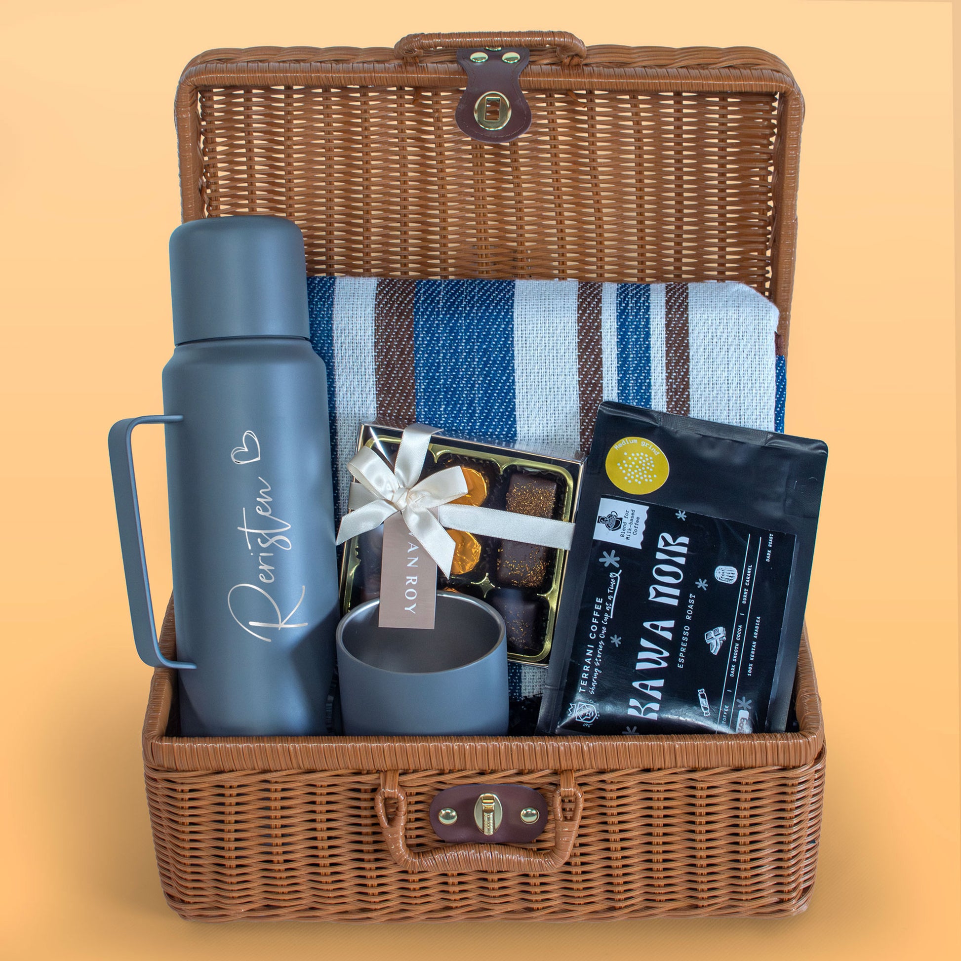 Woven Rattan Picnic Basket: Stylish, reusable, and ready-to-gift for a polished presentation.