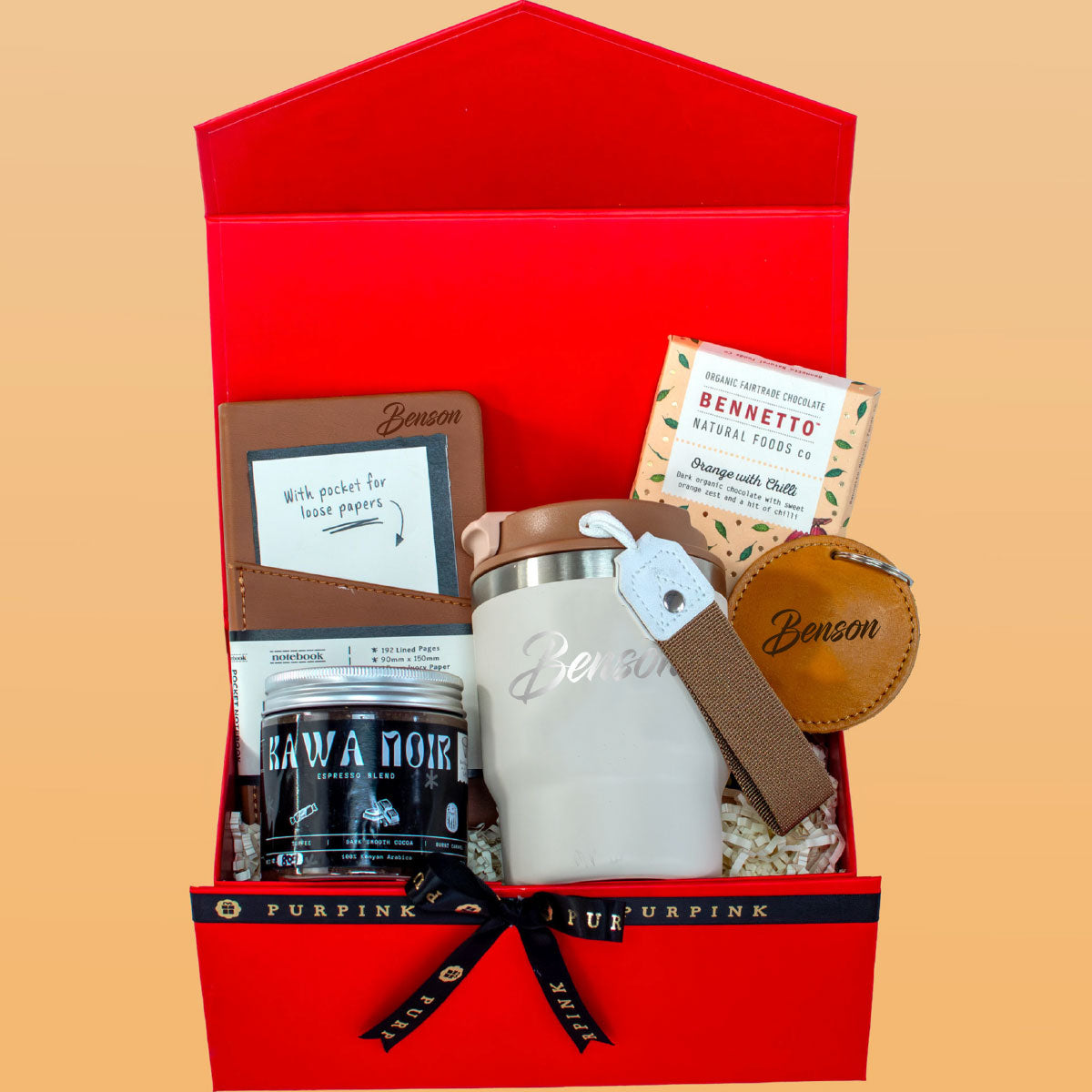 From rich coffee to a sleek vacuum mug and a handcrafted leather keychain, every item inside this hamper is curated to add convenience, flavour, and a touch of sophistication to their day. Elegantly presented in an executive magnetic gift box, it’s a practical yet luxurious gifting choice.